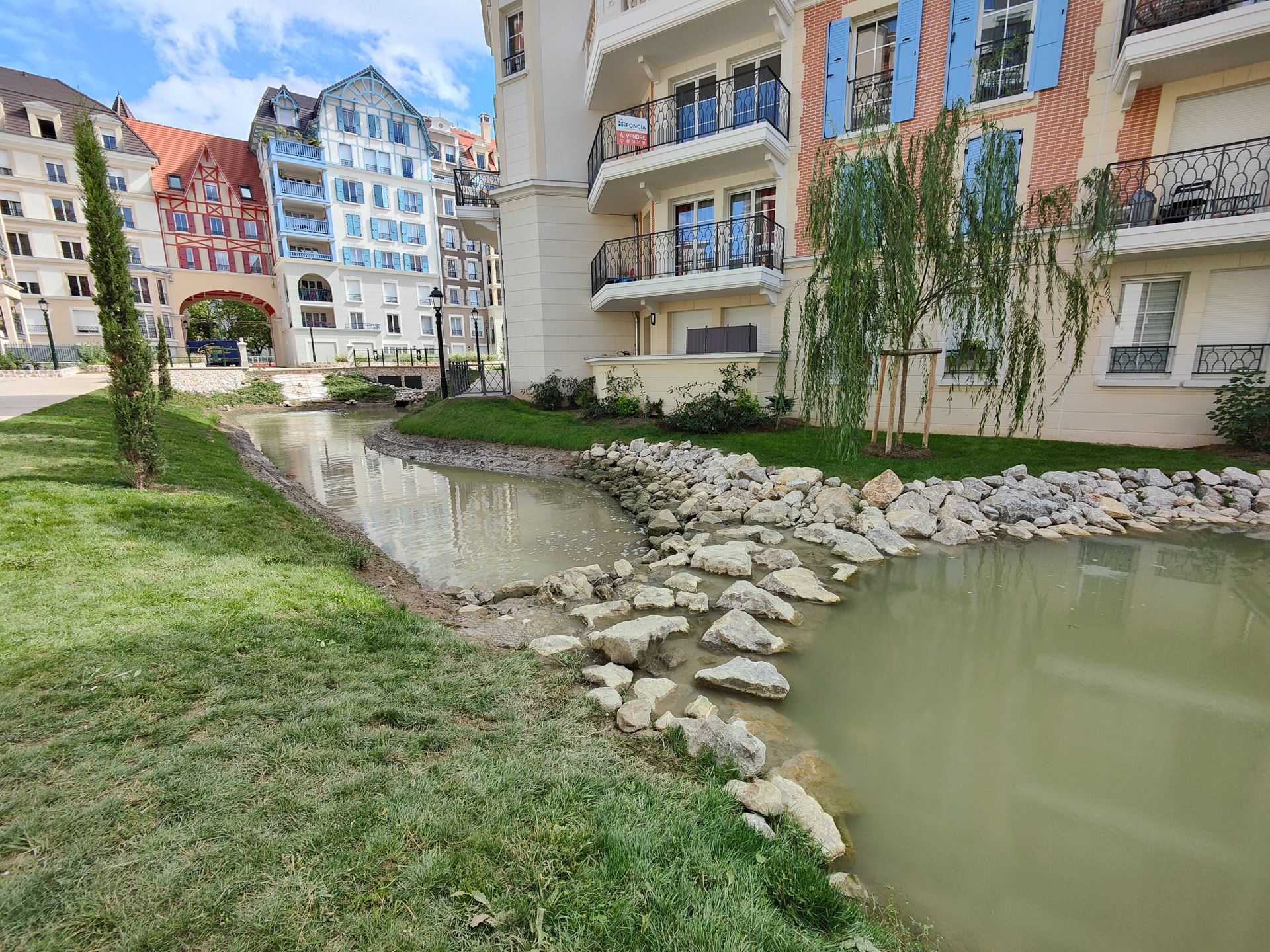 Aménagement de voirie, de bassins d’agrément avec cascades, assainissement EP et EU, tranchées, réseaux divers (AEP, télécommunications, fibre optique, vidéoprotection, électricité BT, gaz et éclairage), points d’apport volontaires et espaces verts.